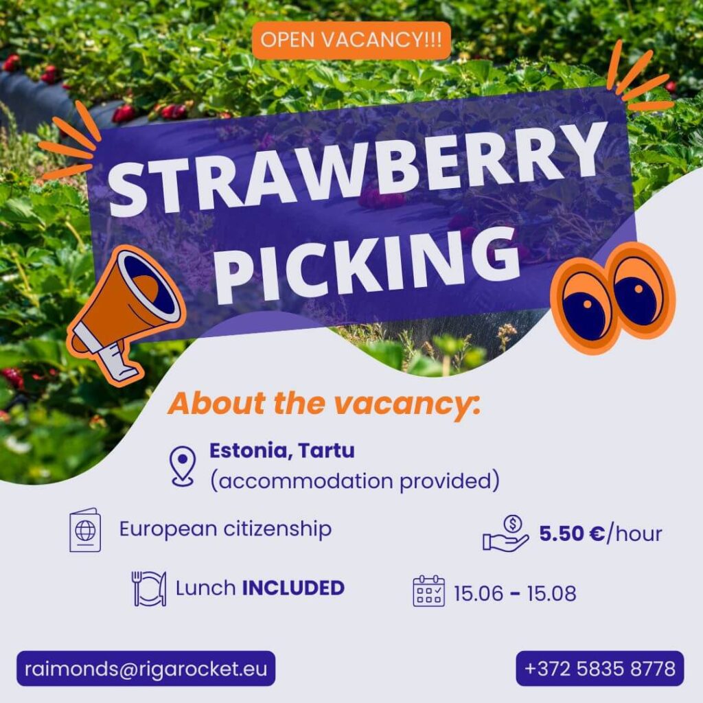 Darba iespēja Tartu, Igaunijā! Meklējam strādniekus zemeņu lasīšanai.